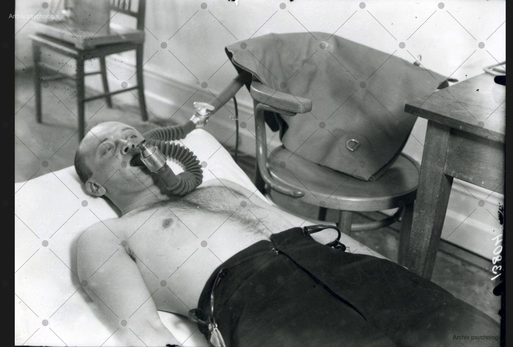 1931 (8.9.) - Psychotechnický ústav Masarykovy akademie práce, pacient při dechovém vyšetření