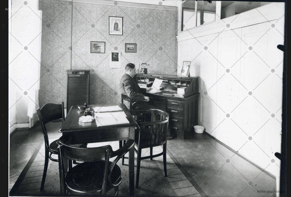 1931 (8.9.) - Psychotechnický ústav Masarykovy akademie práce, profesor František Šeracký v ředitelně ústavu
