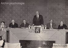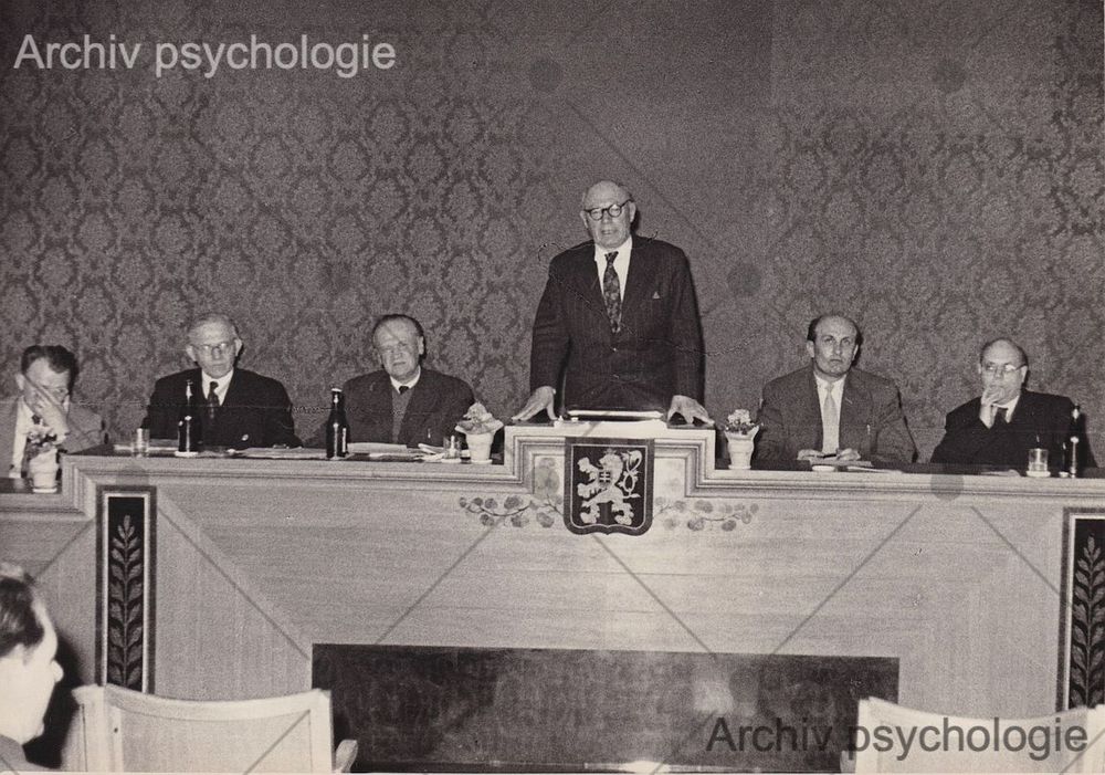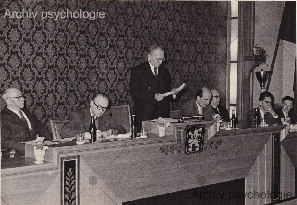 1958, Praha, Ustavující valné shromáždění ČSPS - 10. psychiatr Svetozár Nevole s listem