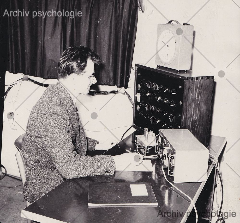 1962, Praha, pohled do laboratoře na Hradčanském náměstí – zkoumaná osoba