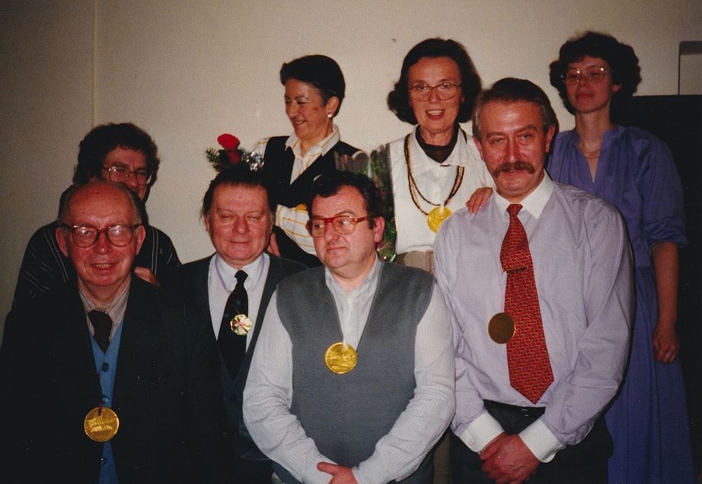 1994, Praha, Rada ČMPS - 3. v levé části Václav Mertin a Miluše Havlínová, v pravé části Zdeněk Kuťák, Lubomír Kostroň, Eduard Urban a Jaroslav Šturma