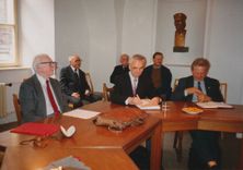 1996, Praha, udělení čestného členství ČMPS Josefovi Brožkovi - 3. vepředu Josef Brožek, Josef Švancara a Karel Plocek