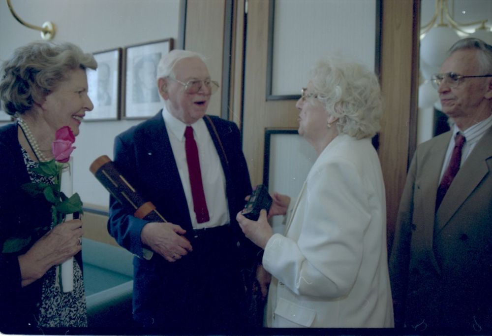 1999, Brno, Čestný doktorát MU Josefu Brožkovi - 14. Josef Brožek s manželkou, Olga Kolaříková a Josef Švancara