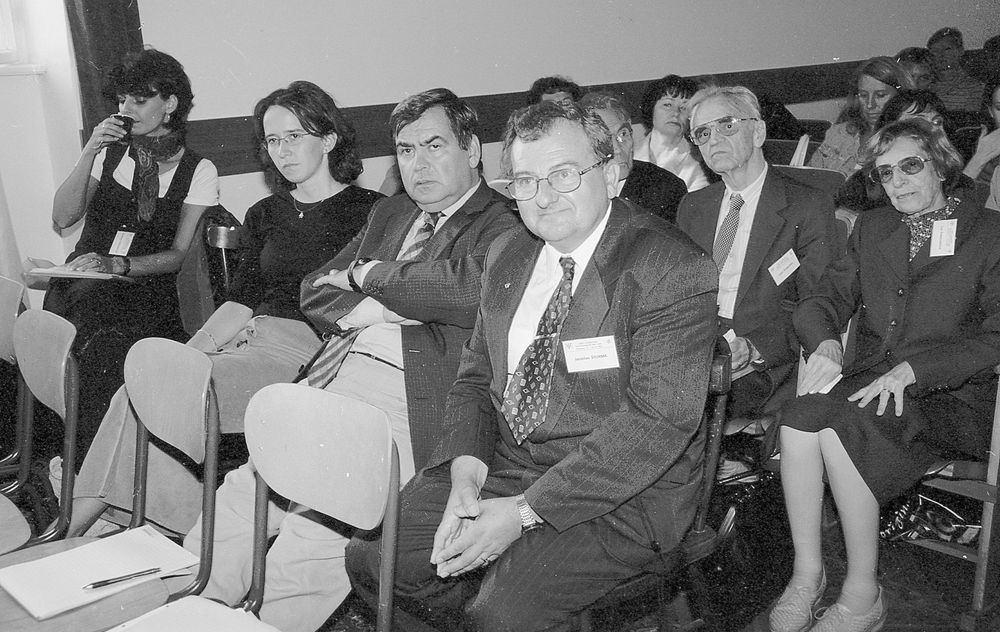 2002, Olomouc, Psychologické dny - 39. posluchači, v první řadě Gianni Biondi, Jaroslav Šturma, ve druhé řadě Josef Švancara, Lea Švancarová (foto A. Jankovský)