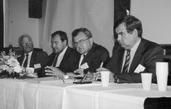 2002, Olomouc, Psychologické dny - 1. Zahájení - Daniel Heller, Jaroslav Šturma, Ivan Sarmány-Schuller, Vladimír Řehan (foto A. Jankovský)