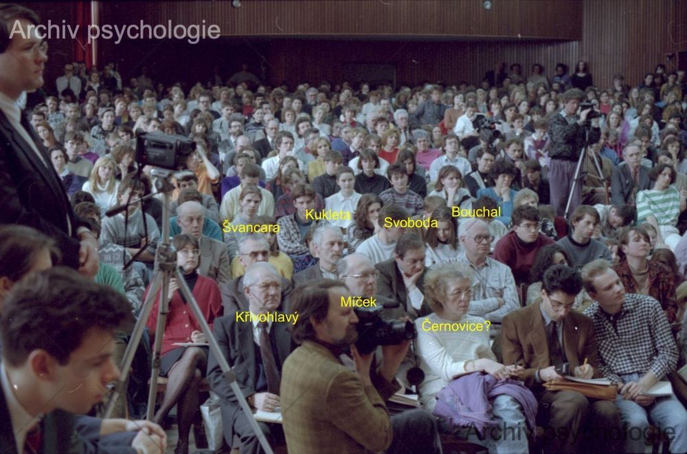 1994 (17.3.), Brno, Přednáška Viktora Frankla Psychoterapie s lidskou tváří - 7. mezi posluchači označeni Jaro Křivohlavý, Libor Míček, Josef Švancara, fyziolog Kukleta, Mojmír Svoboda, psychiatr Bouchal a Věra Machů