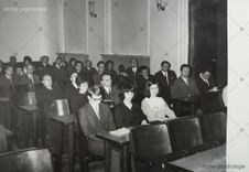 1967, Brno, Pracovní zasedání k poctě 75. narozenin prof. Viléma Chmelaře - 10. posluchači - ve třetí řadě Josef Švancara, Jiří Sedlák a Bohumír Chalupa
