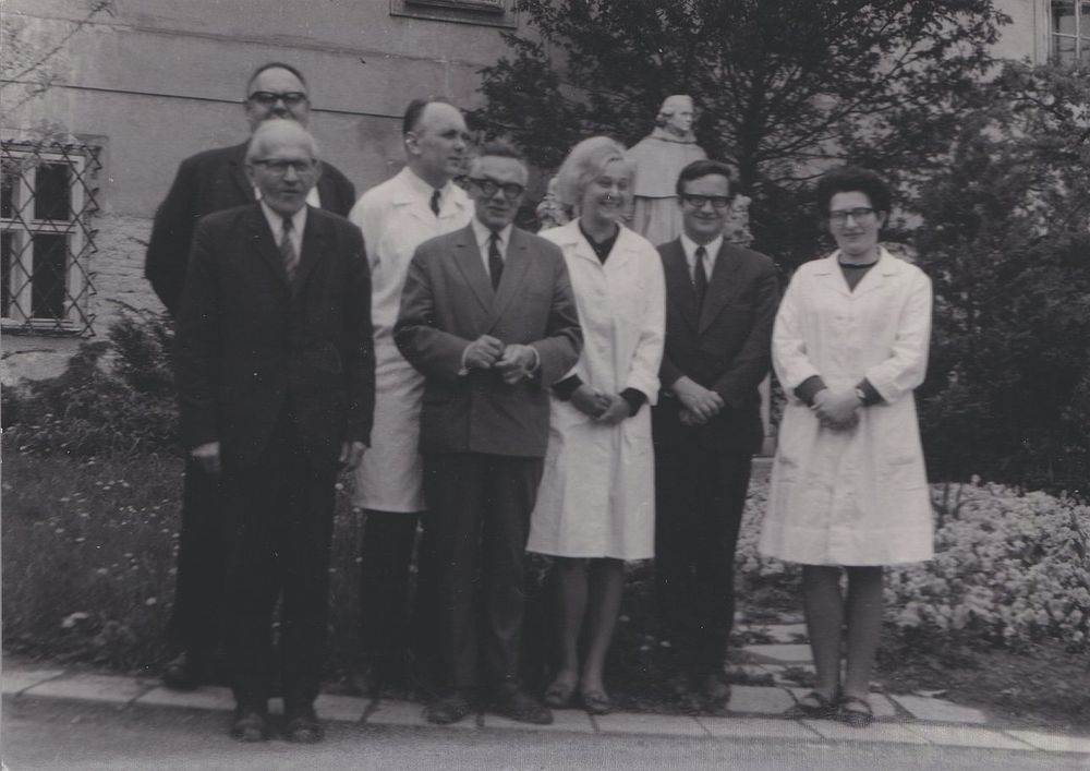 1971, Brno, Psychologická laboratoř ČSAV - zleva Pavel Osecký, Vilém Chmelař, Josef Viewegh, Robert Konečný, x, Vladimír Smékal, Milada Slavíčková