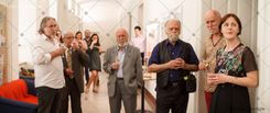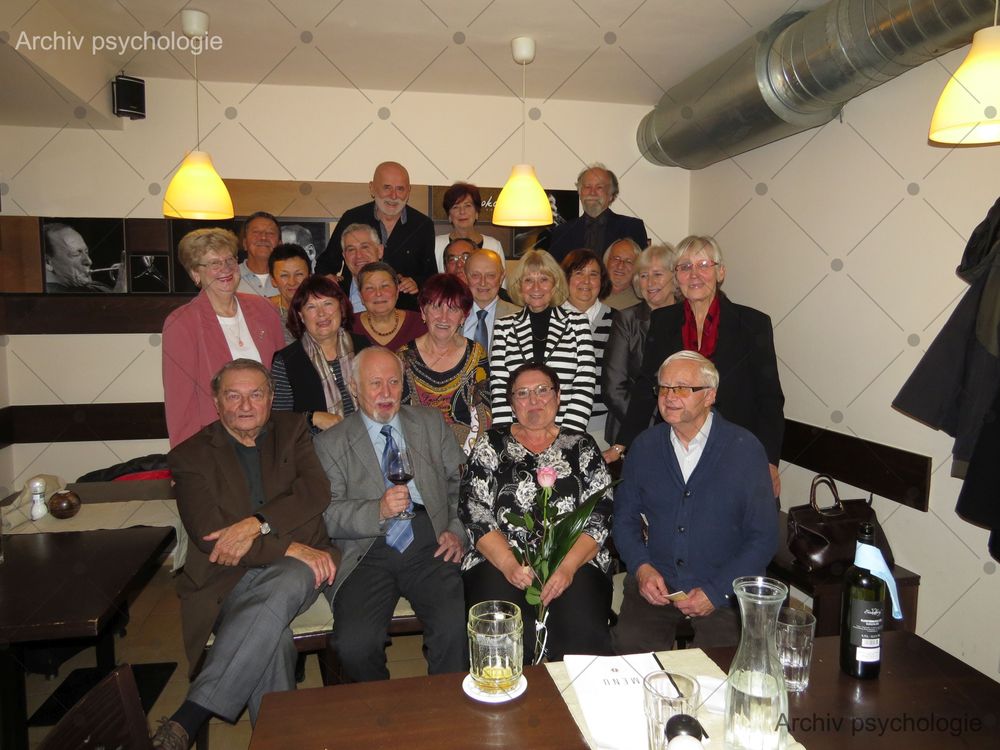 2017, Brno, hromadná fotografie ze srazu studentů imatrikulačního ročníku 1965 s vyučujícími - sedící Ivo Plaňava, Vladimír Smékal, Lubomír Kostroň, vpravo vzadu Petr Hájek
