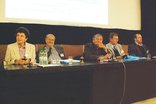 2008, Stará Lesná, Viera Bačová, Imrich Ruisel, Mojmír Svoboda, Jozef Výrost a Marek Blatný na konferenci Sociální procesy a osobnost