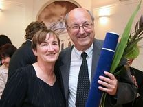 2008, Bratislava, Zdena Ruiselová a Imrich Ruisel s Cenou SAV [fotografie převzata ze stránek Slovenskej akadémie vied]