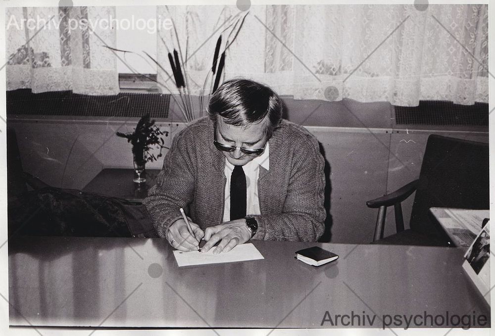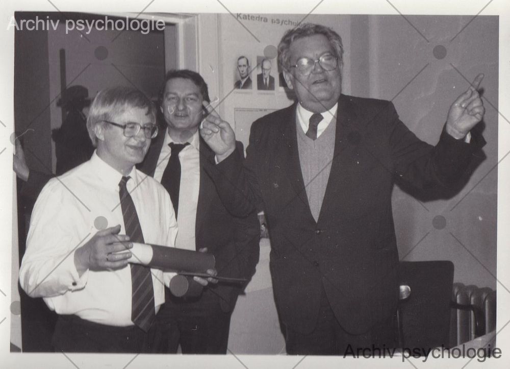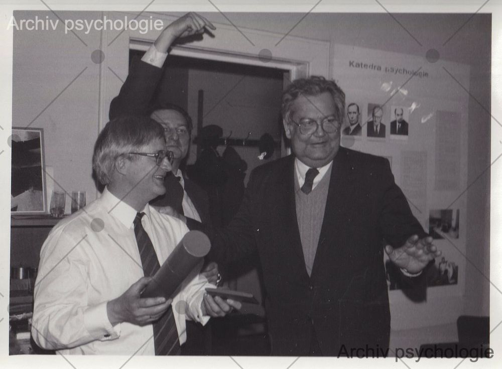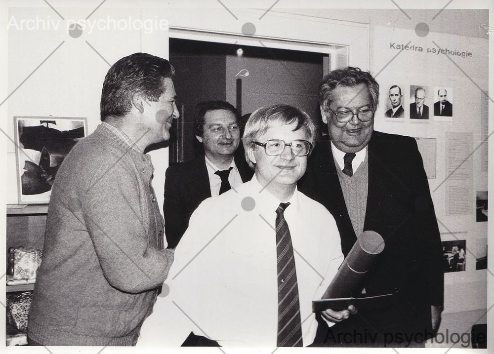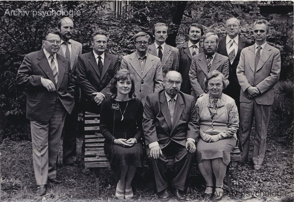 Brněnská katedra psychologie na konci 70. let. Zleva stojící Bohumír Chalupa, Vladimír Kubínský, Jiří Sedlák, Vladimír Smékal, Lubomír Vašina, Jiří Kulka, Libor Míček, Josef Švancara. Uprostřed mezi sekretářkou a knihovnicí sedící Jozef Kuric