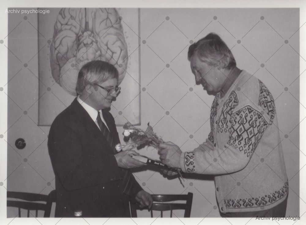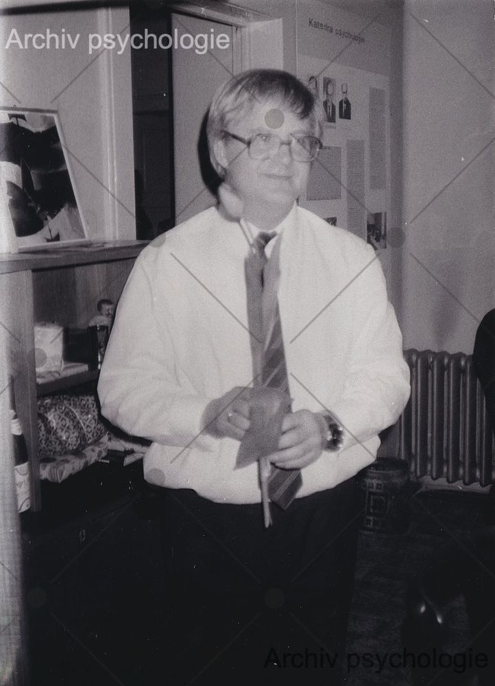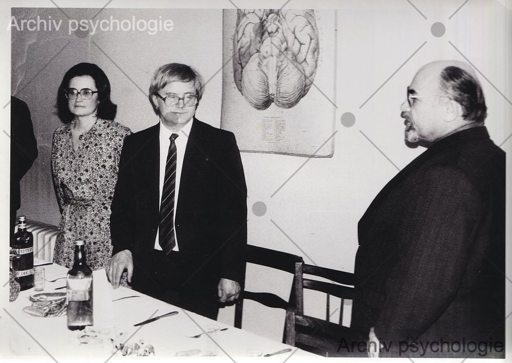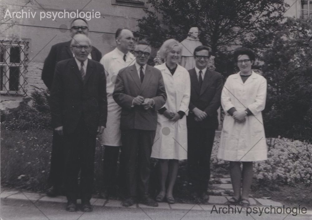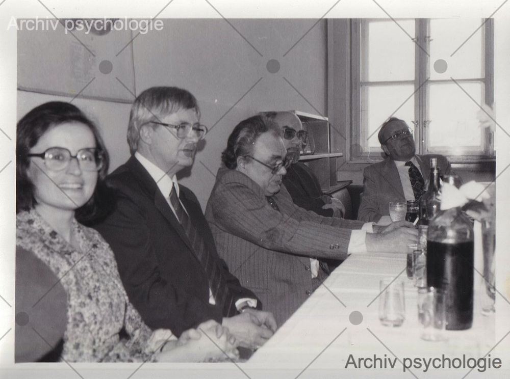 Brněnská katedra psychologie na konci 70. let. Zleva stojící Bohumír Chalupa, Vladimír Kubínský, Jiří Sedlák, Vladimír Smékal, Lubomír Vašina, Jiří Kulka, Libor Míček, Josef Švancara. Uprostřed mezi sekretářkou a knihovnicí sedící Jozef Kuric